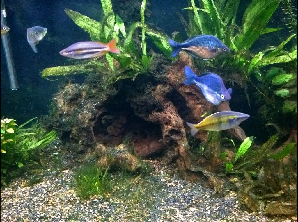 Another shot of the broader tank so you can see the different algae growing on the wood vs. some of the plants.